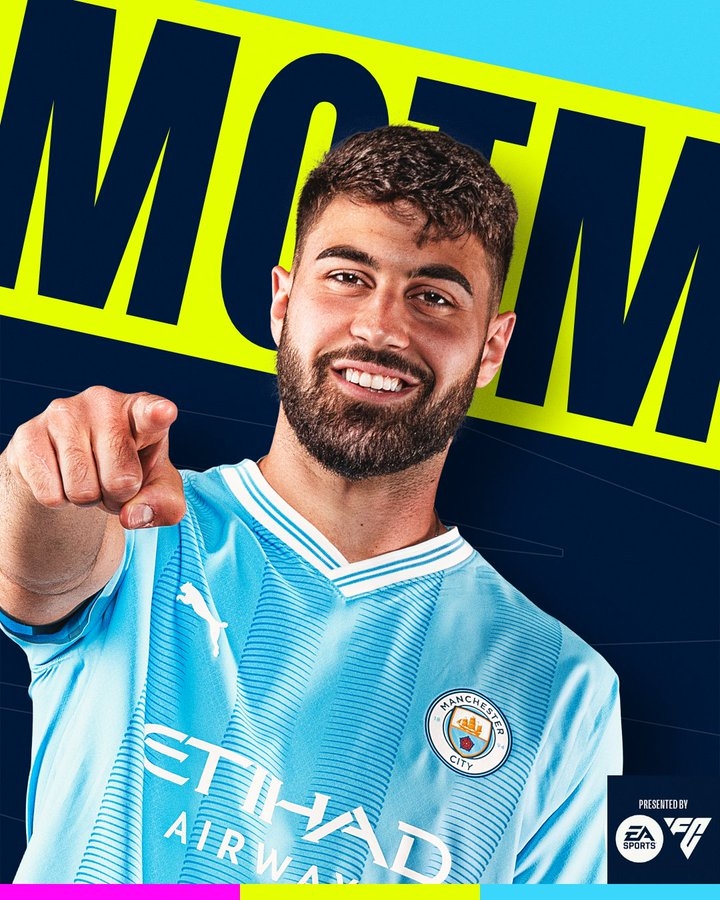 曼城官方消息,格瓦迪奥尔当选曼城本场比赛队内最佳球员。