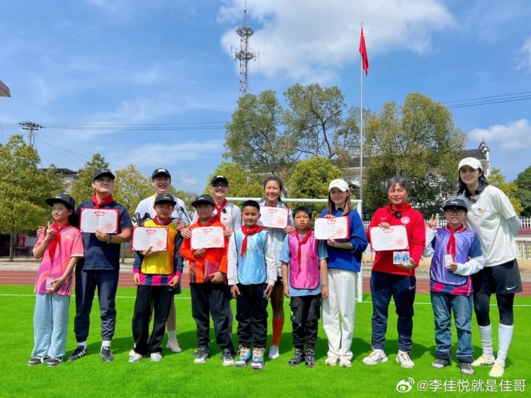 李佳悦在个人微博中晒出了多张图片,并写道:因为赵丽娜的“星球计划”公益活动让我和平安哥哥,彭导,村长,管哥,雨熙一起带着孩子们快乐的踢球,虽然很费嗓子,但是这种感觉真的很棒呀!“星球计划”阳光球场005号正式开启!愿有更多的优秀球员可以走到孩子们的身边,让他们爱上足球!感谢所有工作人员这几天的付出,给叨叨点赞!
