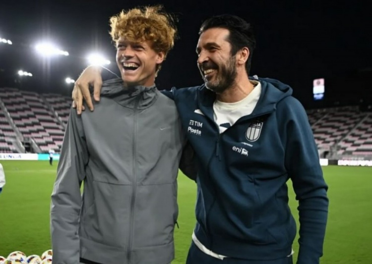 3月21日讯 本月,意大利国家队将在美国进行两场热身赛。意大利网球新星辛纳目前正在参加ATP迈阿密大师赛,他也抽空造访了正在迈阿密国际主场训练的意大利国家队。