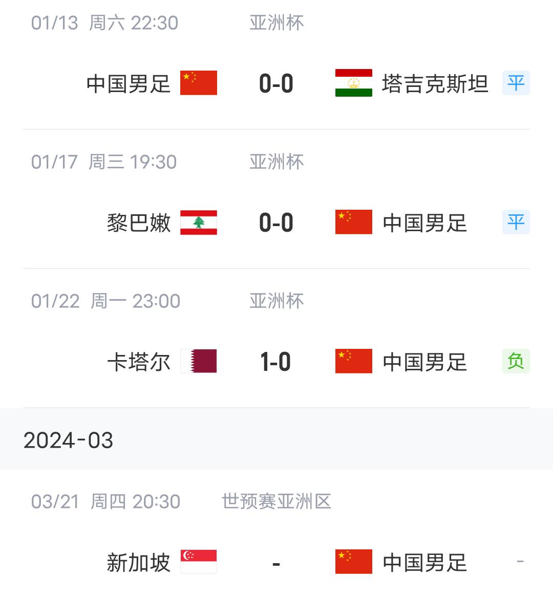 国足在年初的亚洲杯2平1负仅积2分无缘出线,三场比赛进球数更是尴尬的“0”。