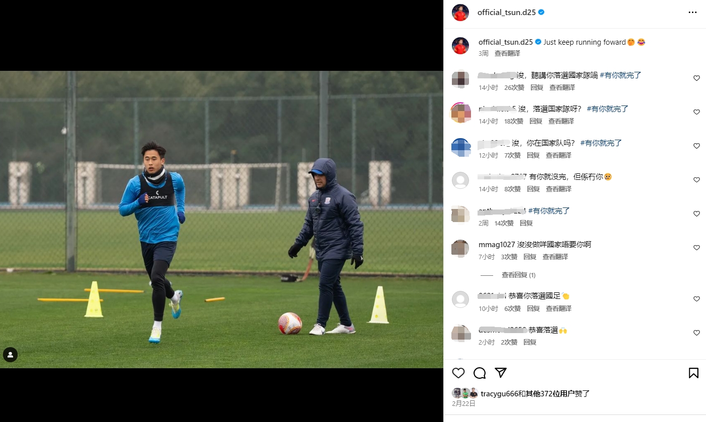 唉...戴伟浚落选国足今晚23人名单,评论区遭中国香港球迷嘲讽
