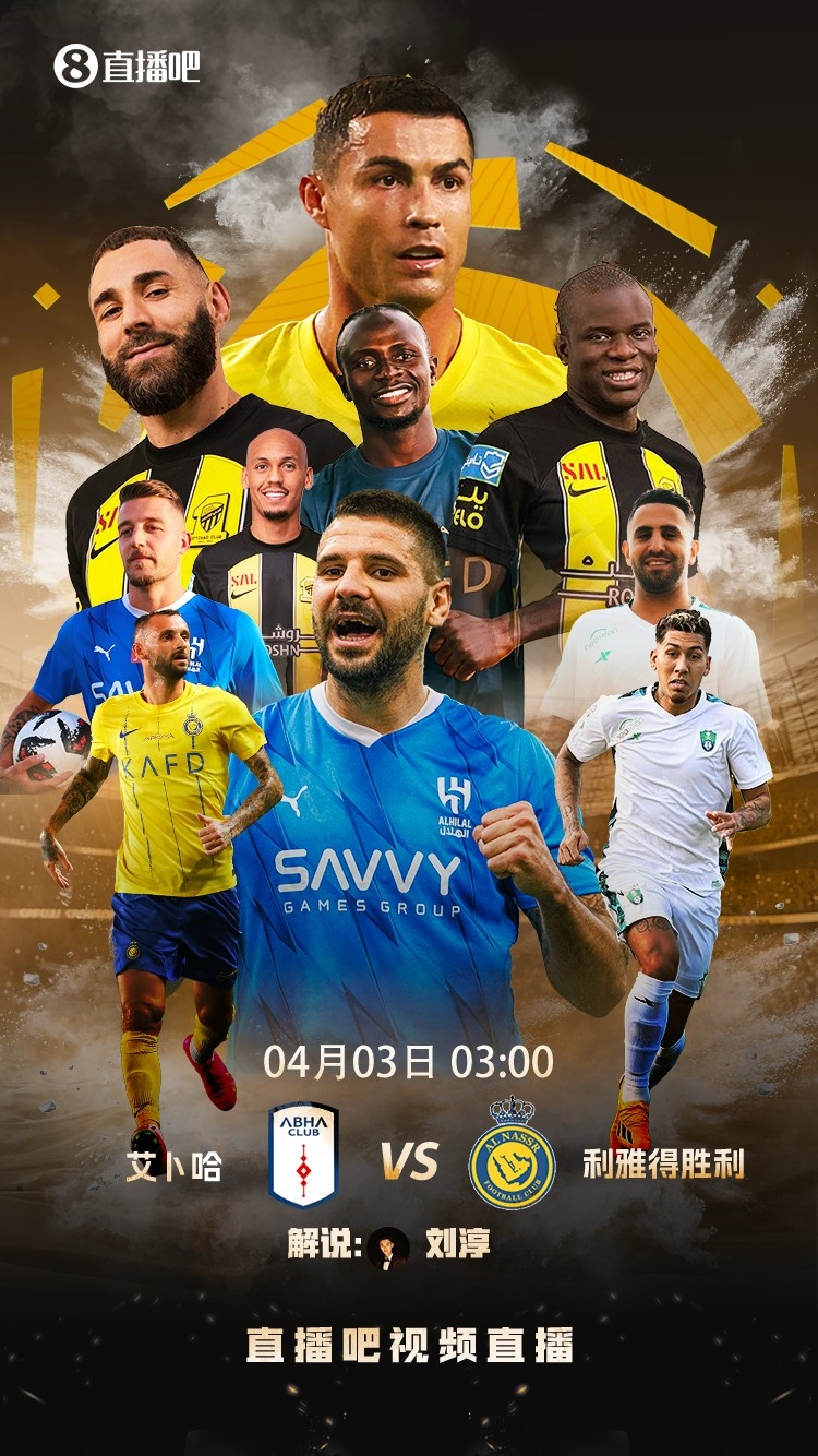 4月2日讯 沙特联第26轮,北京时间4月3日03:00,利雅得胜利客场对阵艾卜哈,将视频直播本场比赛,本场比赛解说由刘淳带来。