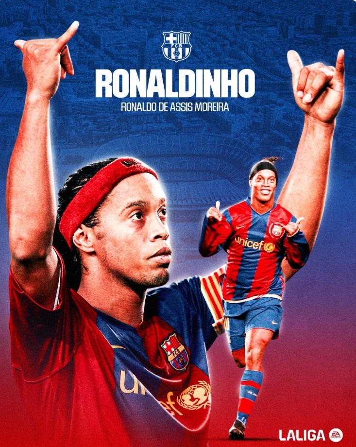 3月21日讯 今天是巴西传奇球星罗纳尔迪尼奥44岁生日,西甲官方也晒出海报为这位球场精灵送上生日祝福。