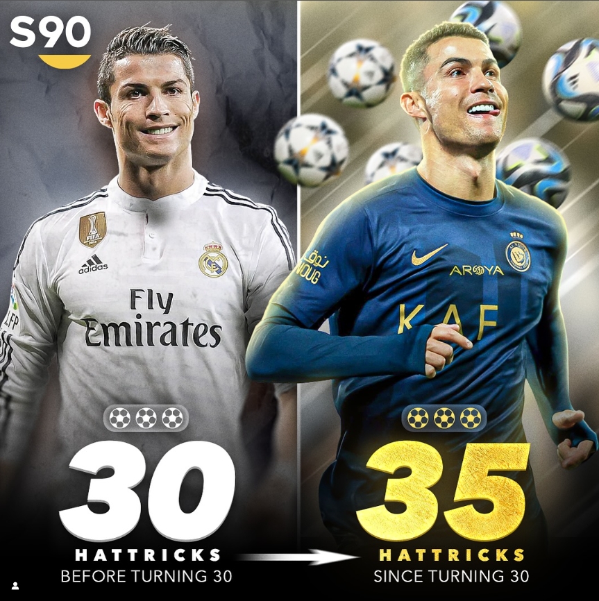 30岁前30个帽子戏法,30岁后35个帽子戏法