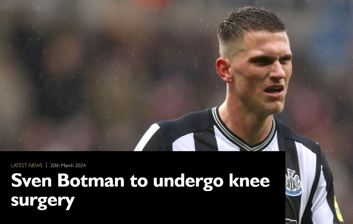 03月21日讯 纽卡官方消息,中卫博特曼在足总杯对阵曼城的比赛中十字韧带受伤,下周将接受手术,预计将缺席6到9个月。