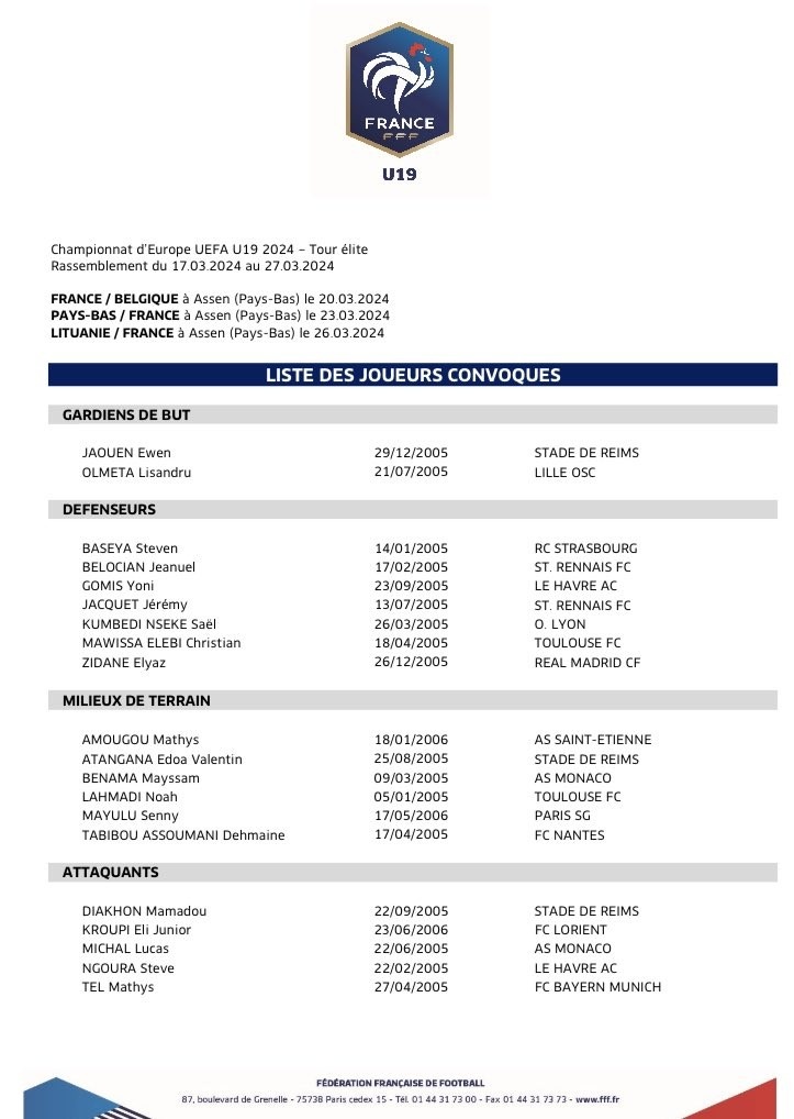 3月21日讯 据记者Djamel报道,由于法国U19通知本次国家队比赛没有斋月,部分拒绝这一决定的球员遭到替换。