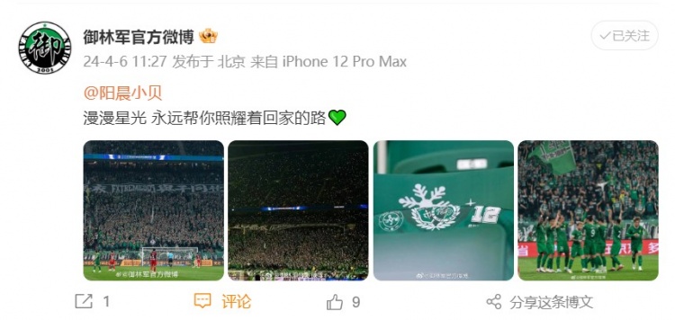 4月6日讯 4月2日,国安女球迷杨雪未能战胜病魔遗憾离世。御林军官方微博悼念杨雪,并写道:漫漫星光,永远帮你照耀着回家的路。