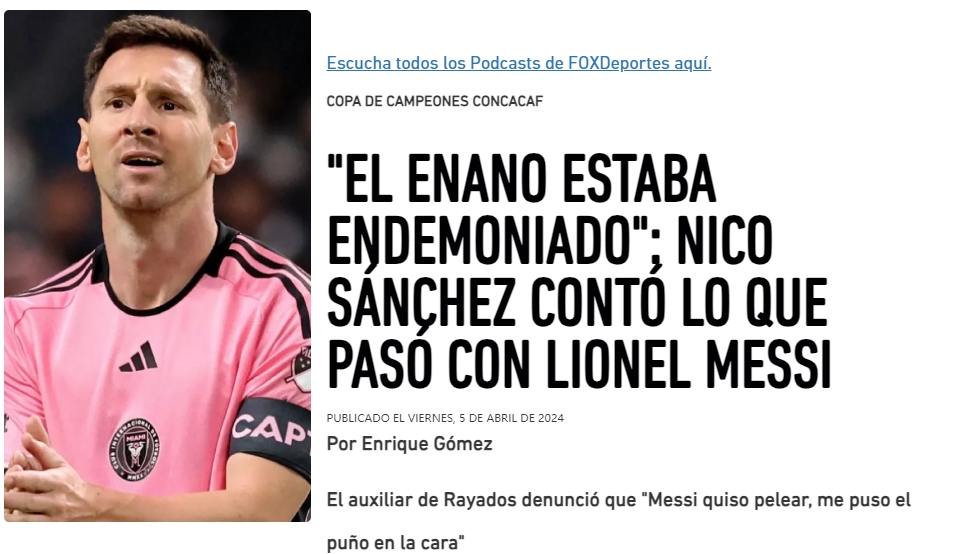 据《福克斯体育》报道,蒙特雷主帅奥尔蒂斯的助教尼科-桑切斯,通过墨西哥当地的福克斯体育频道,谈到了此前梅西等人走近蒙特雷的客队更衣室发生争吵的事宜。