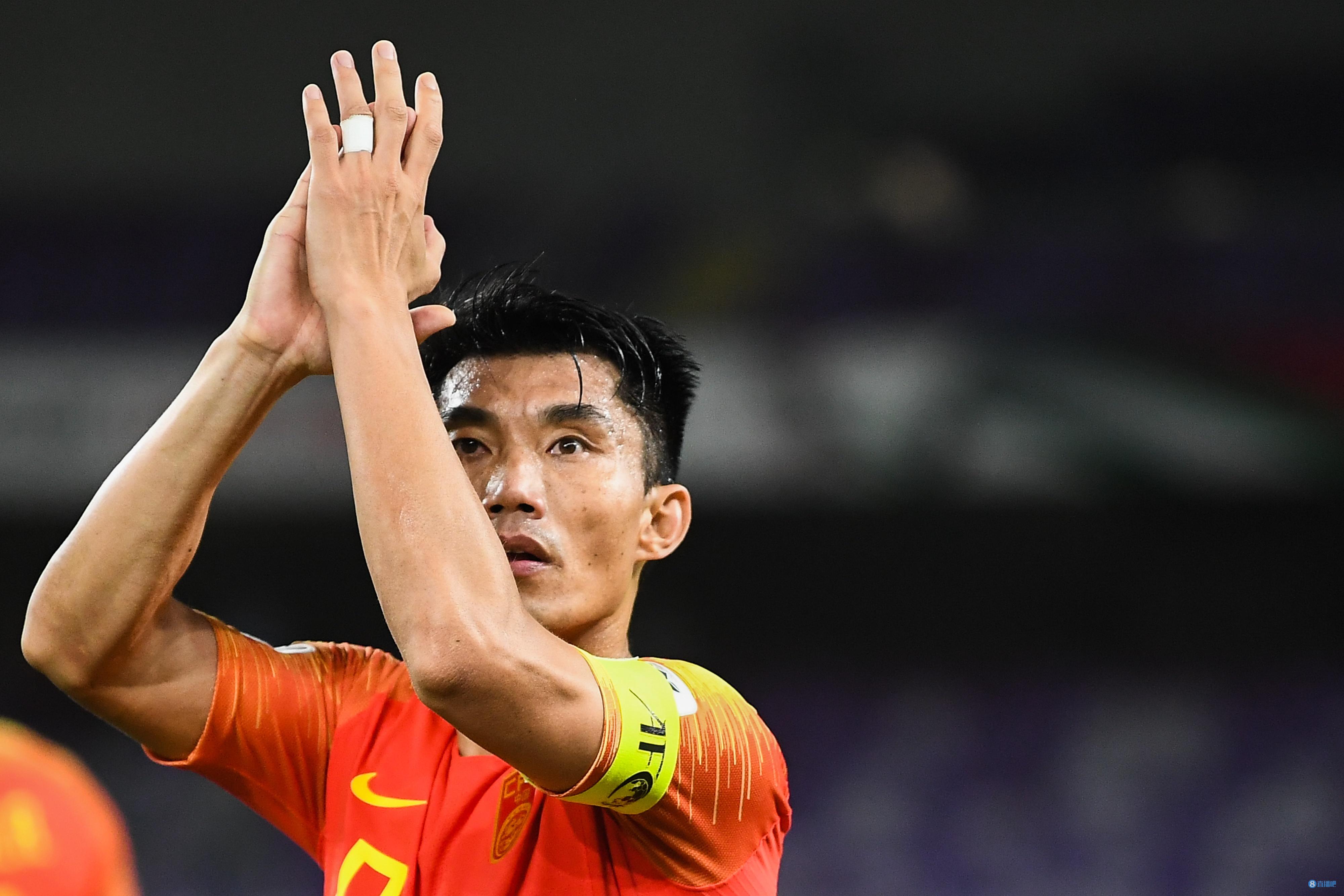 国足首发:31-杨智、17-张琳芃、19-杨昊、4-荣昊、13-刘建业、10-郑智、15-吴曦、21-张稀哲、14-孙可、20-武磊、22-于大宝